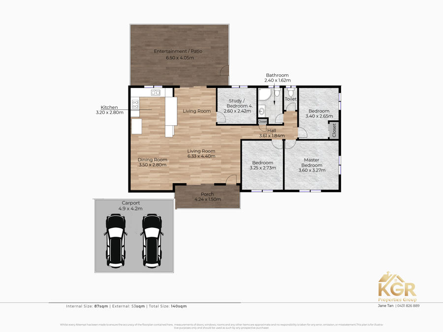The 3 good size bedrooms plus 1 good size study/office room comes with ceiling fans offering comfort and relaxation for all. The main area and the master bedroom come with air-condition raising the bar for comfort space. Adding to the beauty is the 6-star equivalent fully tiled shower, wall-mounted mirror with storage, quality vanity, and a separate tiled toilet.