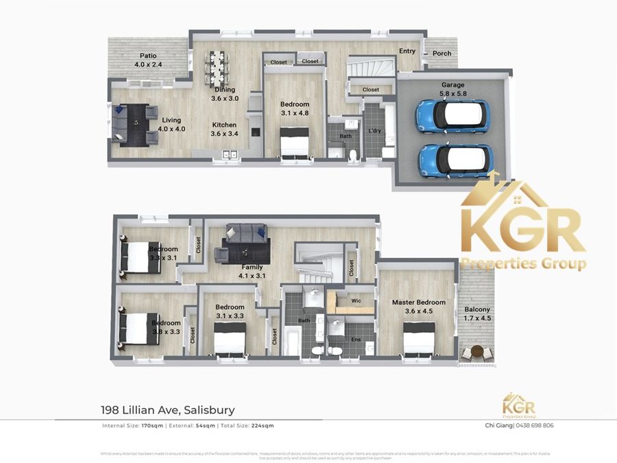 Upstairs there is 4 bedrooms (all have built in wardrobes), 2 bathrooms